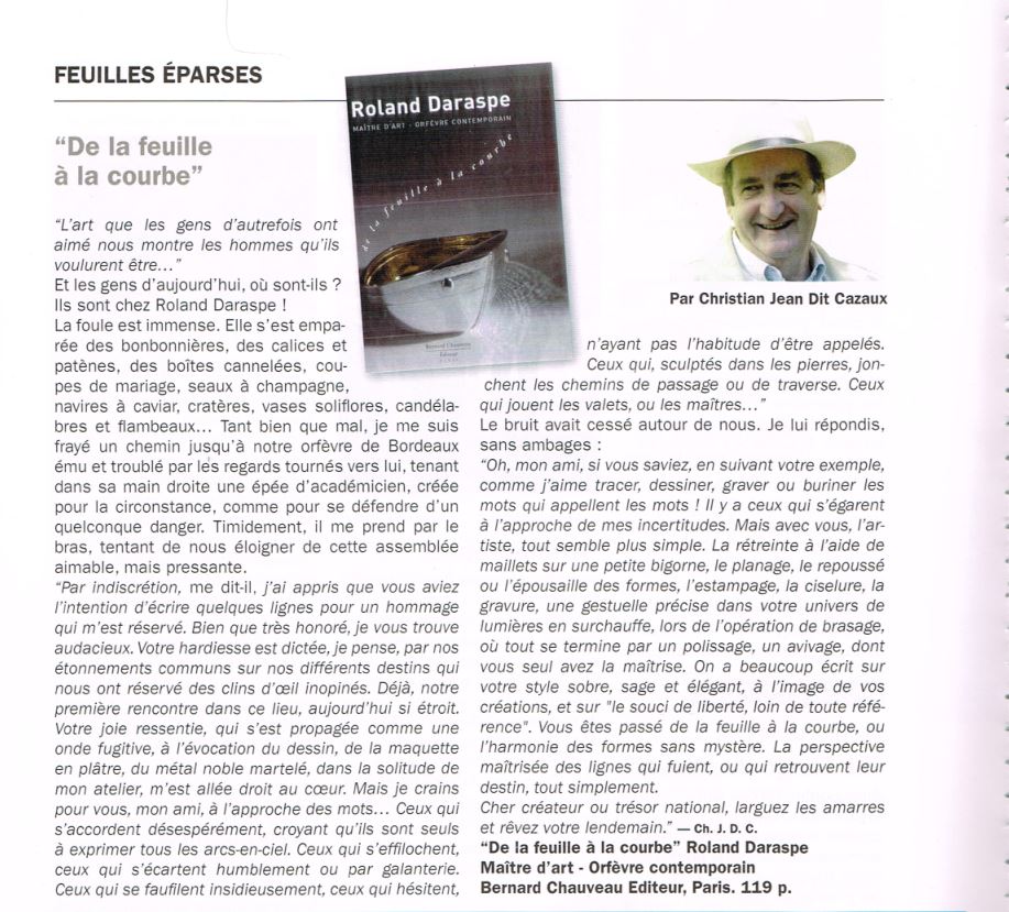 Le maître-orfèvre Roland Daraspe à l’honneur au Musée des Arts décoratifs de Bordeaux – Aqui.fr – 27/03/20085 décembre 2016